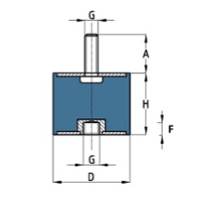 Gummipuffer, Gummi Metall zylindrisch mit einem Gewindebolzen davon eine Schraube und eine Mutter auf Unterlagescheibe gepresst, verzinkt danach.