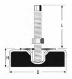 Rubber anti-vibration foot adjustable in height with galvanized steel insert with fine threaded square headed bolt.