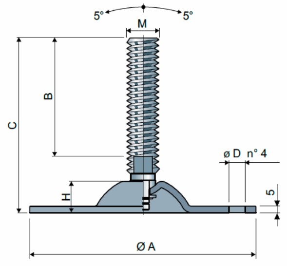 Galvanized steel adjustable swivel foot, from 4500 to 4900 kg, steel base series