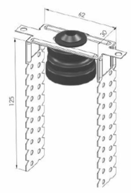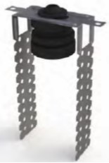 Le support antivibratoire + le châssis in tôle zinguée peut être facilement fixé au plafond en utilisant une vis M6. Cette solution permet de suspendre tuyauteries d’air, plaques de plâtre et autres applications possibles.