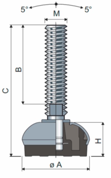 L’absence de cavité intérieure permet le nettoyage total du pied réglable.